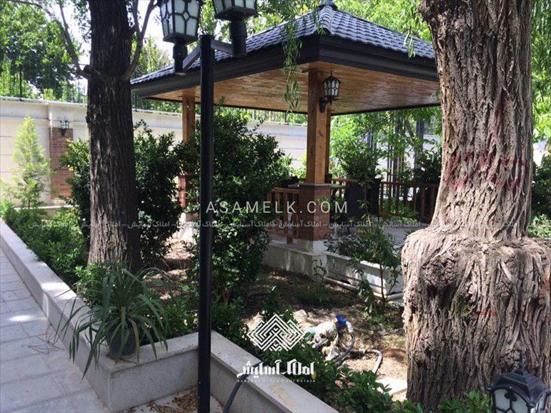 آلاچیق زیبا با ویوی کامل باغ بصورت تمام چوب وسیستم پخش موزیک