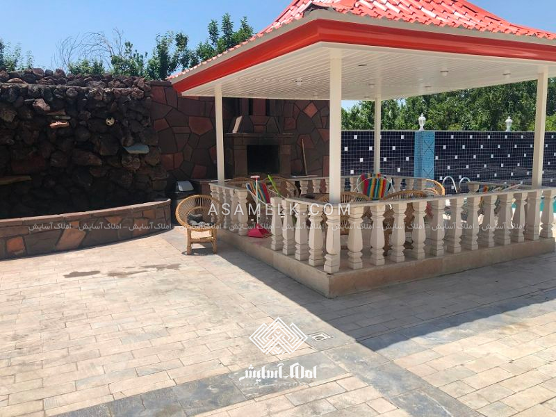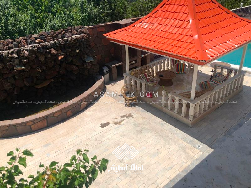 آلاچیق و آبنما در مجاورت ویلا و استخر