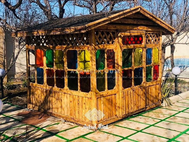 - کلبه چوبی رنگی بسیار جذاب در محوطه باغ
