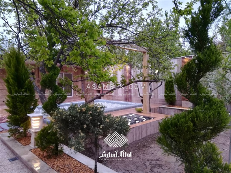 محوطه مهندسی ساز و دیدنی به همراه درختان زیبا زینتی