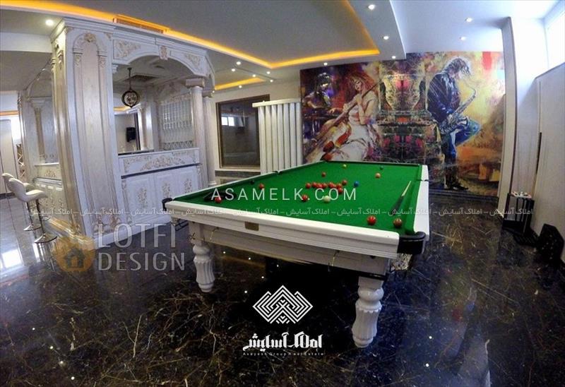 در طبقه همکف شامل , آشپزخانه مجهز , فول فرنیش , tv room , سالن میهمان با شیشه های قدی به ارتفاع 4 متر و مشرف به استخر