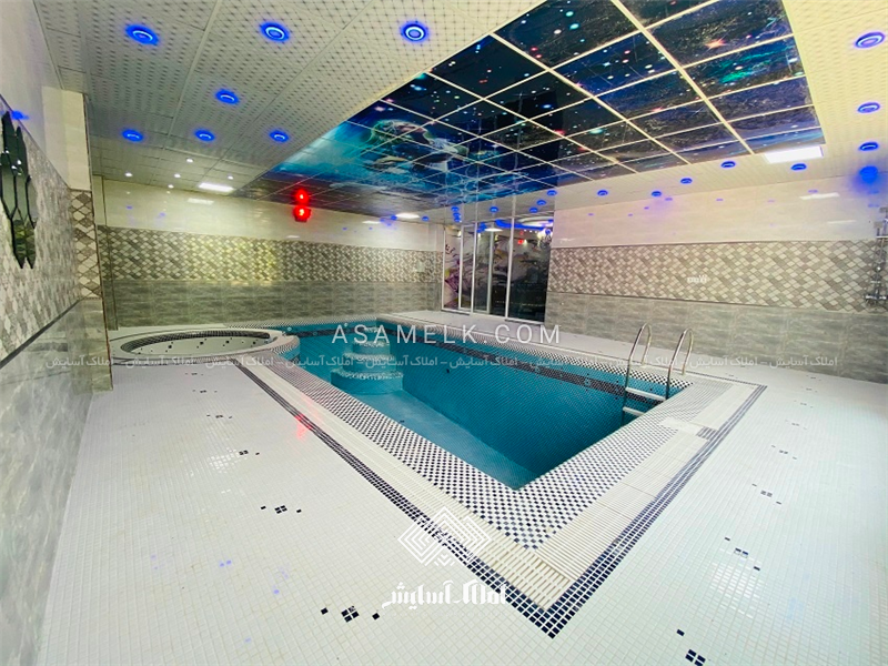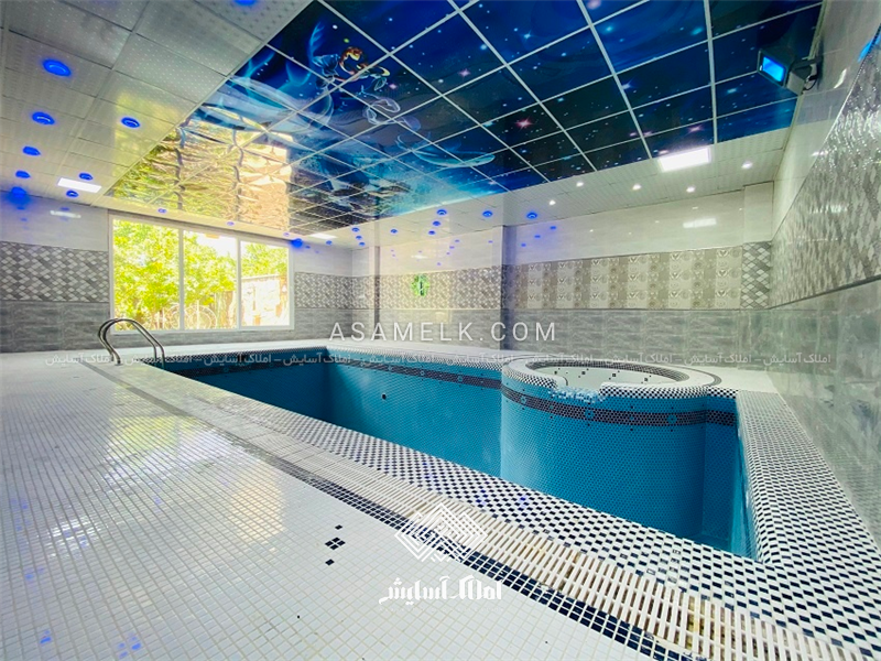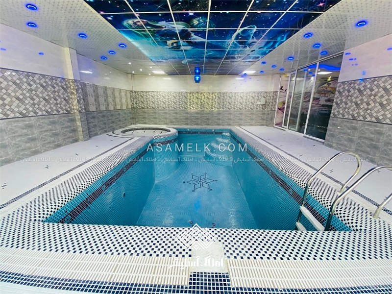 دو استخر روباز و سرپوشیده با کلیه تجهیزات و هر دو مجهز به موتور خانه چهارفصل