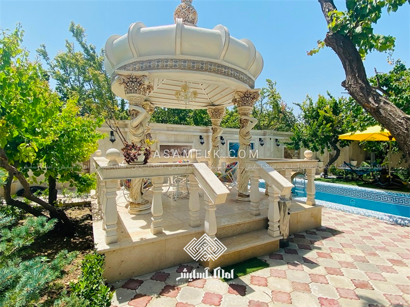 آلاچیق بزرگ و زیبا با چشم انداز فوق العاده باغ ویلا