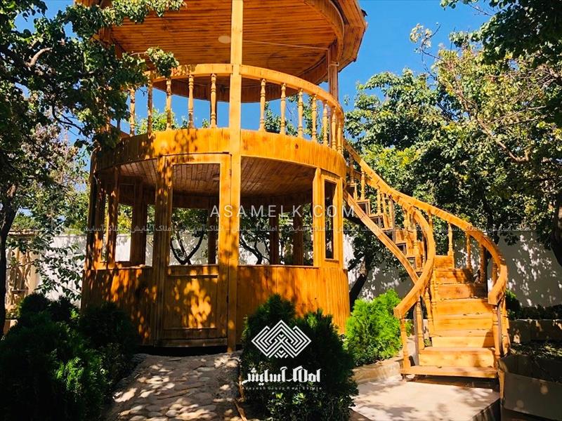 - آلاچیق چوبی در دو طبقه با چشم انداز زیبای باغ ویلا