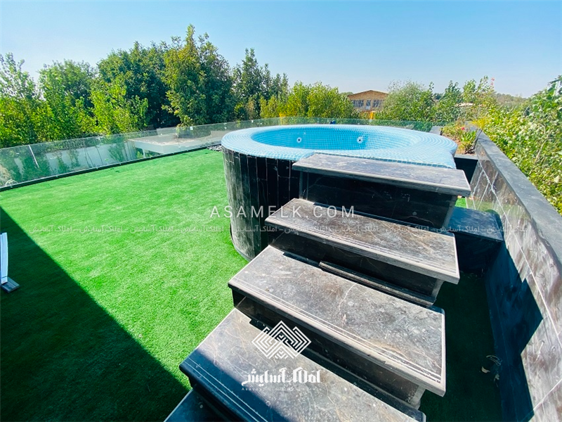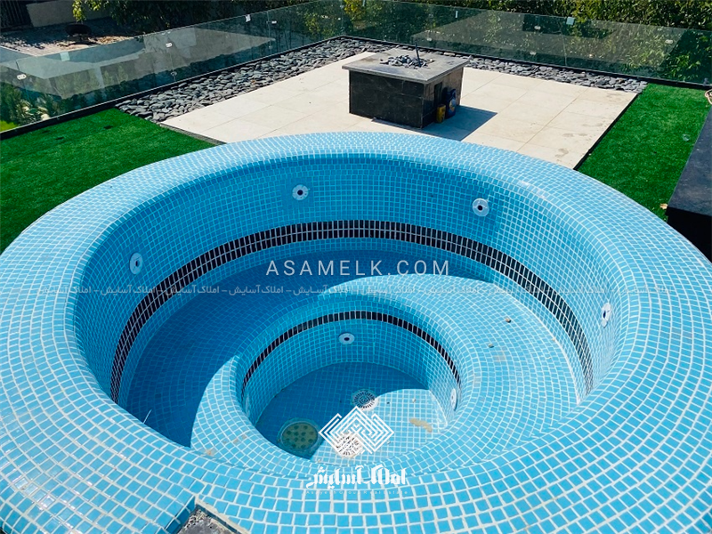 - استخر کاشی کاری شده و چهارفصل با کلیه امکانات و تجهیزات در فضای باز باغ ویلا
