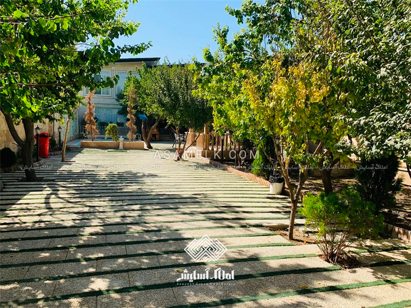 - محوطه سازی شده با استفاده از سنگ فرش و درختان زینتی