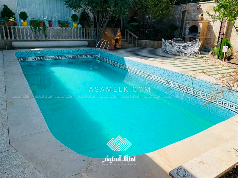 - استخر در مجاورت ویلا به صورت کاشی کاری شده به همراه تاسیسات کامل