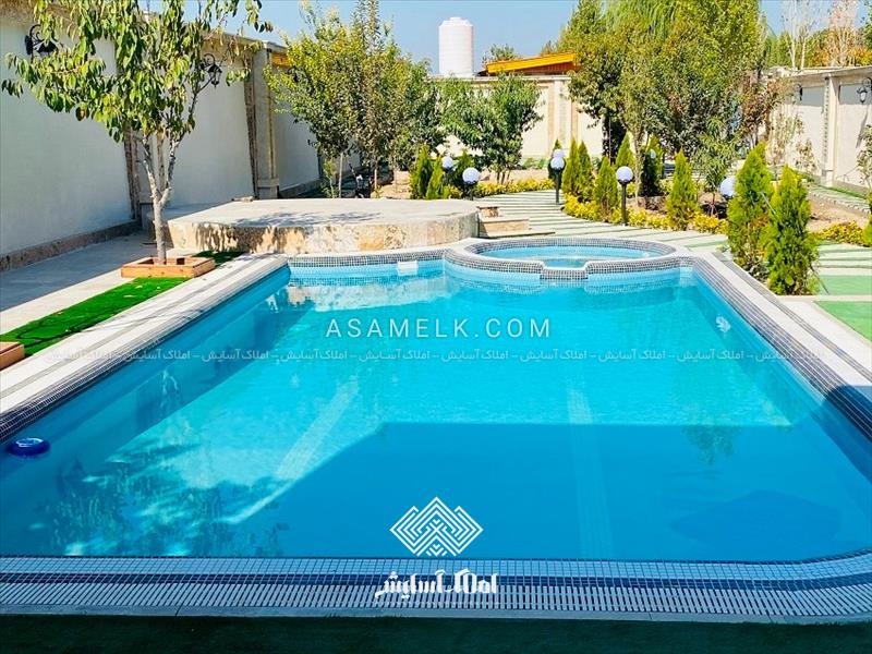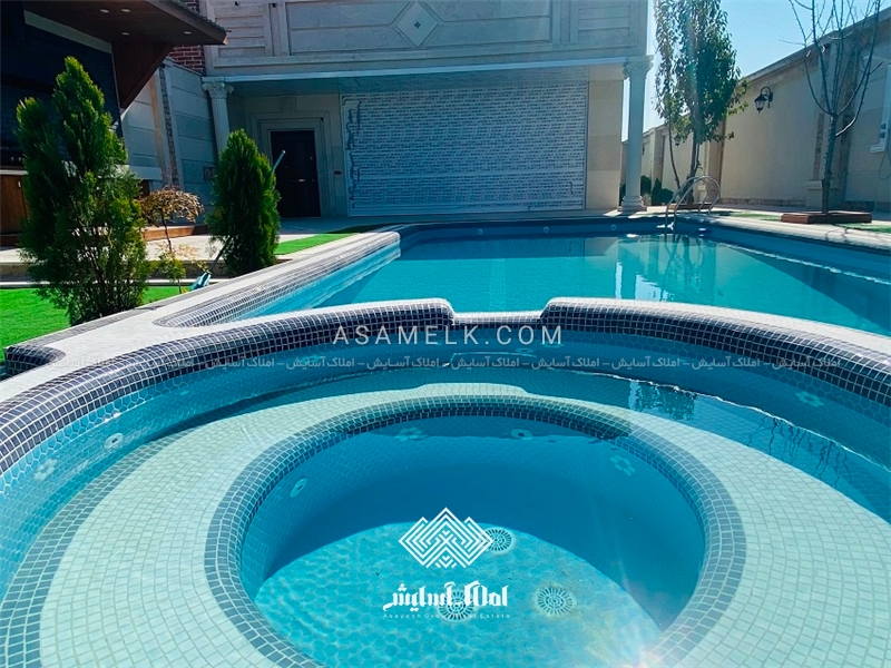 - استخر بزرگ روباز کاشی کاری شده در مجاورت ویلا مجهز به تصفیه خانه