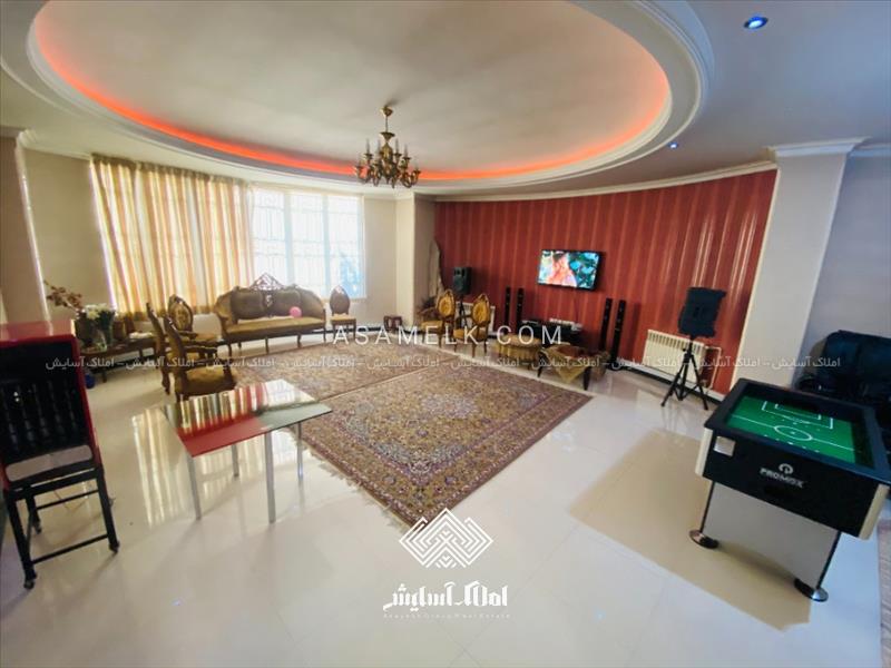 - سالن پذیرایی شیک و بزرگ ، آشپزخانه با کابینت های چوبی قدیمی , گاز ,هود , یخچال ساید و ماکروفر
