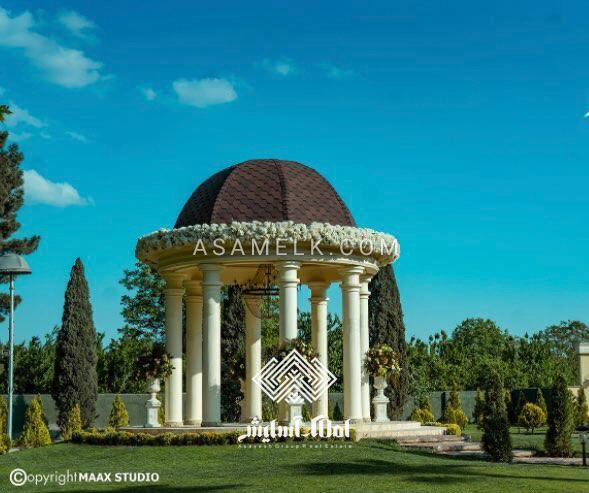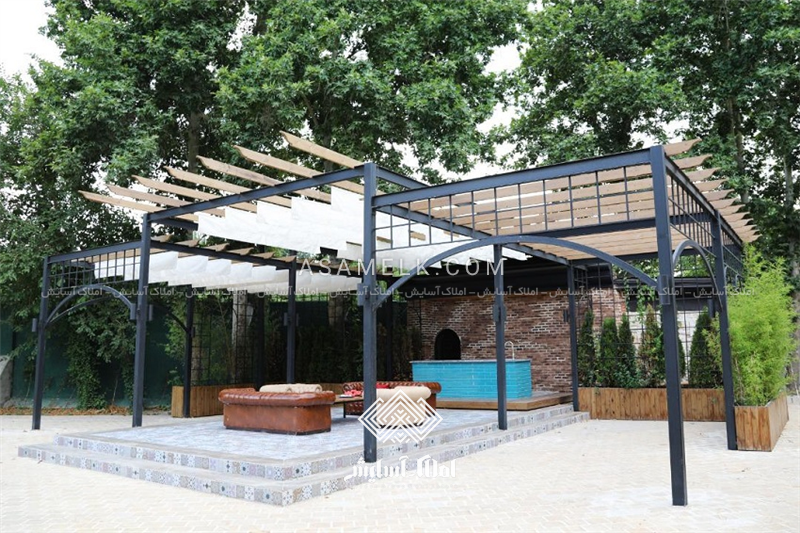 - آلاچیق بسیار زیبا و دیدنی با سازه فلزی به همراه آبدارخانه