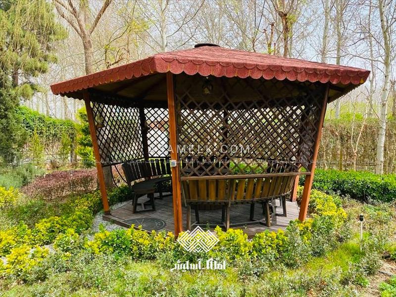 - آلاچیق چوبی بسیار جذاب با چشم انداز بینظیر از باغ ویلا