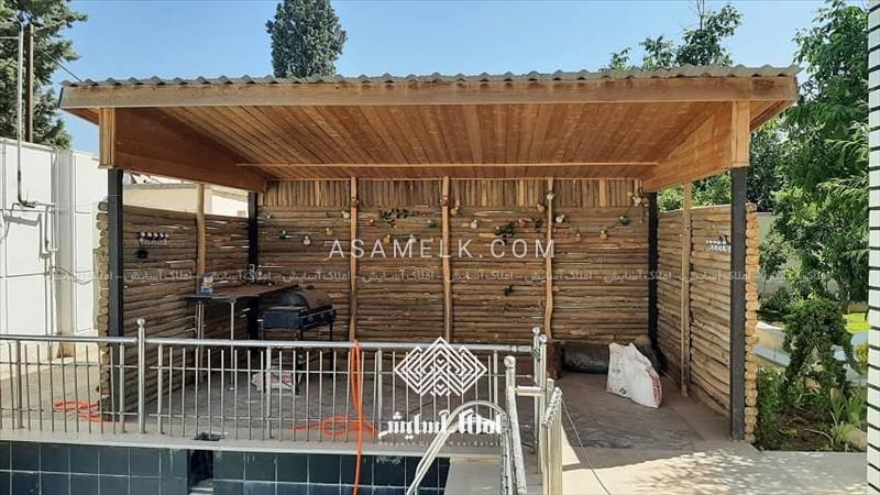 - آلاچیق چوبی بسیار زیبا و جذاب به همراه باربیکیو مجهز