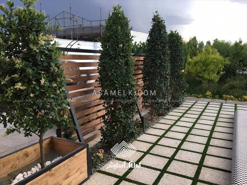 - محوطه سازی بسیار زیبا با بکارگیری درختچه های گل و سنگ فرش شده