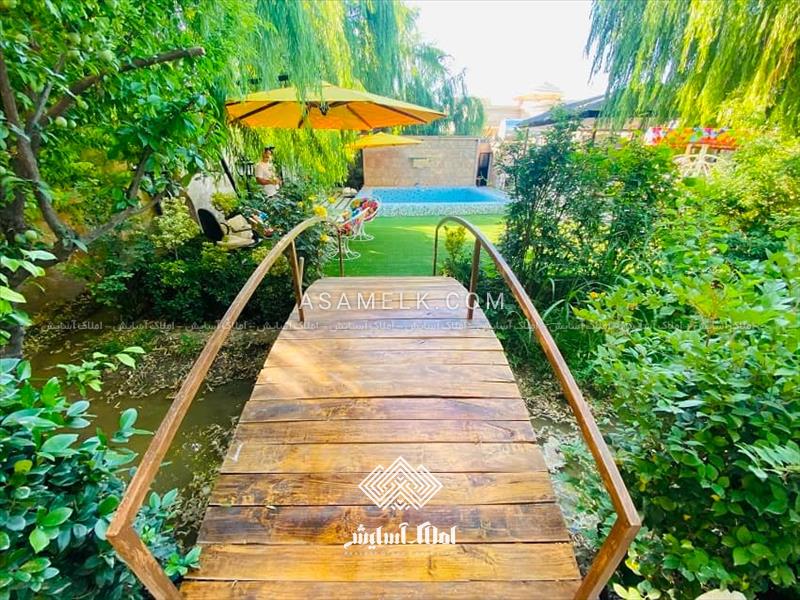- محوطه سازی بینظیر دارای پل چوبی جذاب و دیدنی در دل باغ ویلا