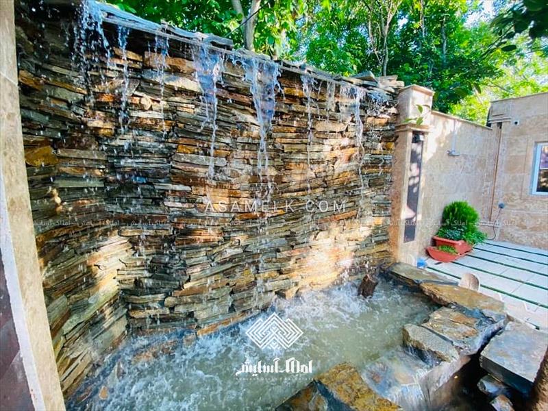- باربیکیوی و آب نما سنگی زیبا و دیدنی در گوشه ای از باغ ویلا