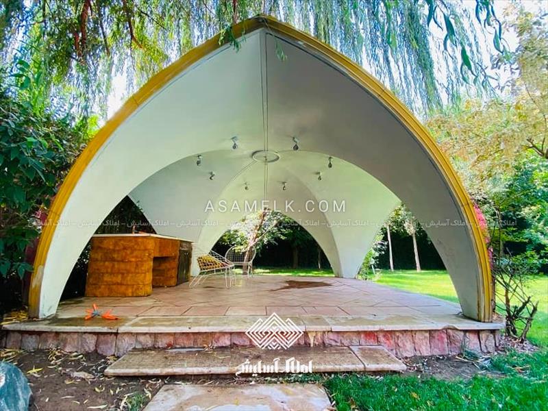 - آلاچیق بسیار زیبا با طراحی خاص به همراه باربیکیو مجهز