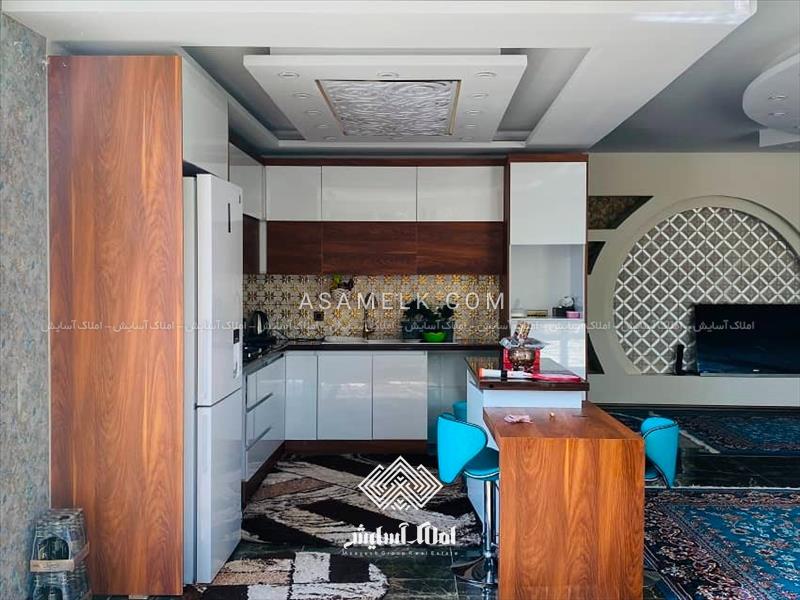 - سالن پذیرایی بزرگ ، آشپزخانه با کابینت های MDF ترک , گاز رومیزی و هود لمسی