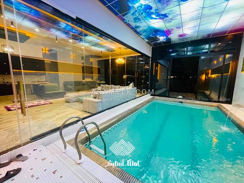 - استخر سرپوشیده و کاملا مجهز به همراه آبنما و موتور خانه