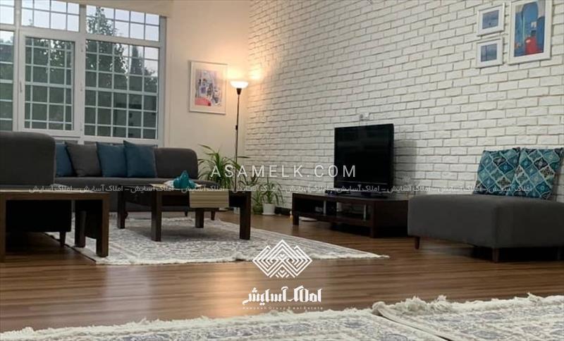 - سالن و آشپزخانه مجهز با کابینت هایگلاس , نمای دیواری آجر , کف پارکت , پنجر های دوجداره