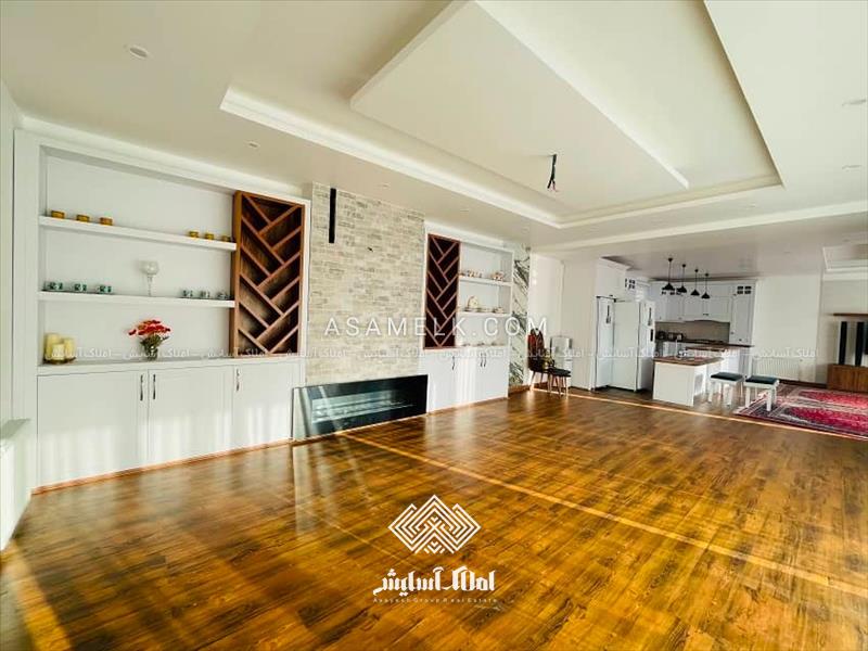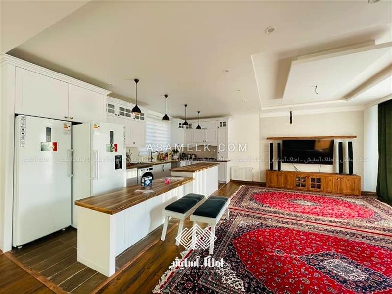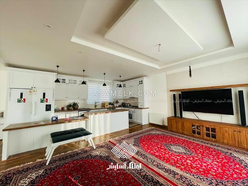 - سالن پذیرایی با کف پارکت و آشپزخانه فول امکانات