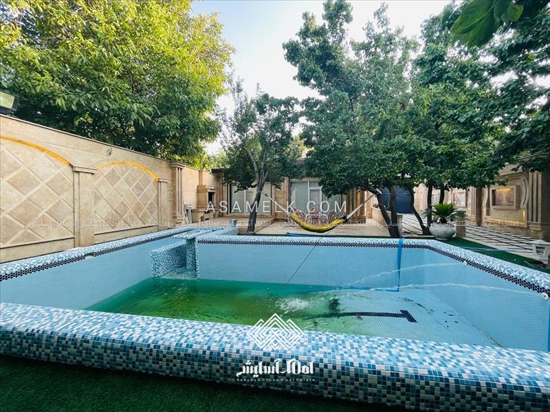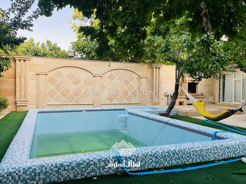 - استخر چهارفصل L شکل در مجاورت ویلا با تجهیزات و تاسیسات تصفیه