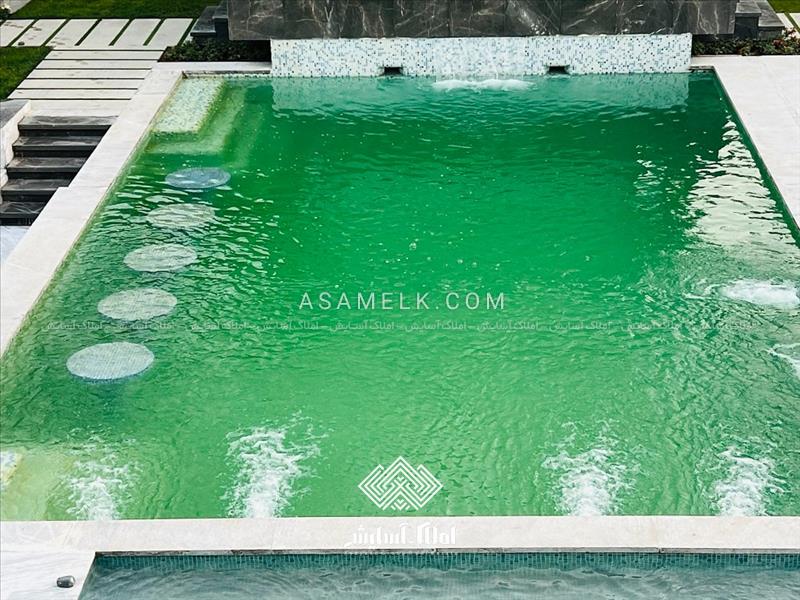 - استخر روباز چهار فصل همراه با جکوزی و آبنما با تجهیزات و تاسیسات تصفیه خانه