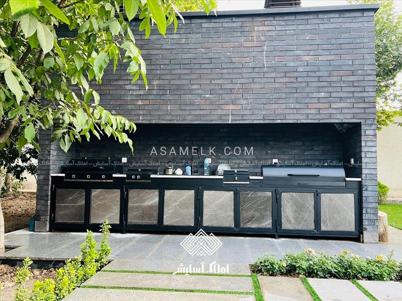 - آلاچیق پرگولا و باربیکیو شکیل با تجهیزات و سینک ظرفشویی