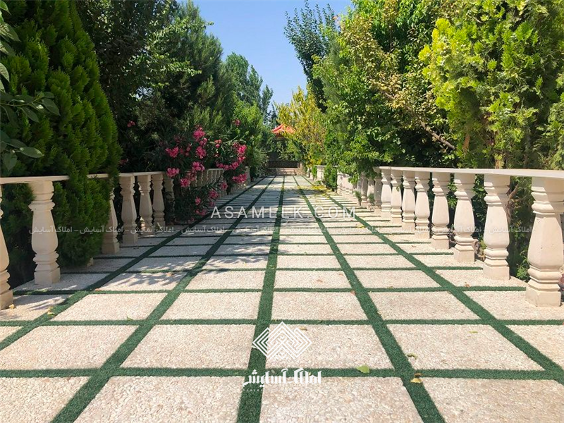 محوطه سازی چشمگیر شامل:گل آرایی،سنگ فرش،نورپردازی کامل محوطه باغ