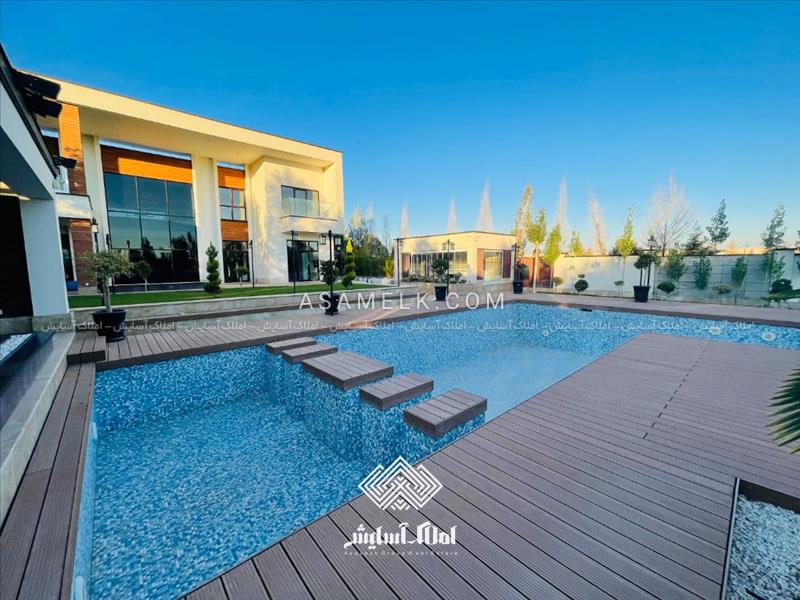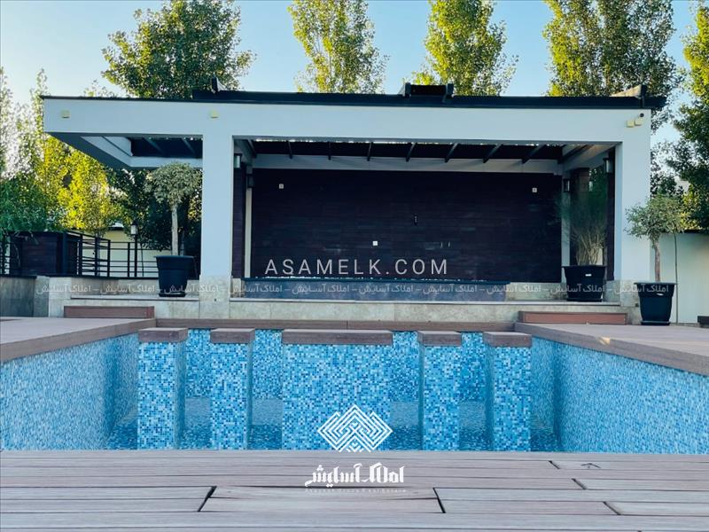 - استخر فوق العاده زیبا L شکل با تجهیزات و تاسیسات کامل قابل استفاده به صورت چهارفصل