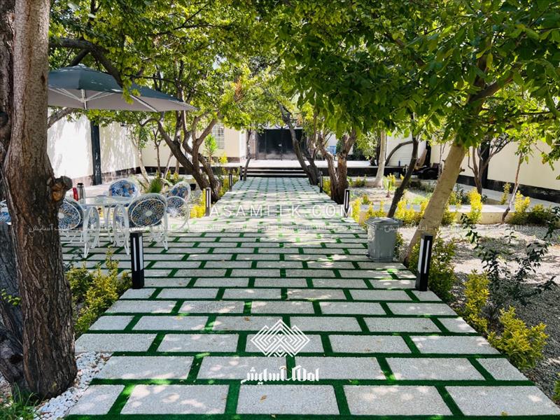 - محوطه سازی شیک و دیدنی با چشم انداز بسیار زیبا به صورت سنگ فرش شده