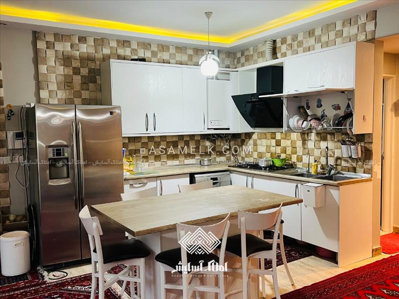- سالن پذیرایی با نورگیری عالی و مبله به همراه آشپزخانه با کابینت های گلاس