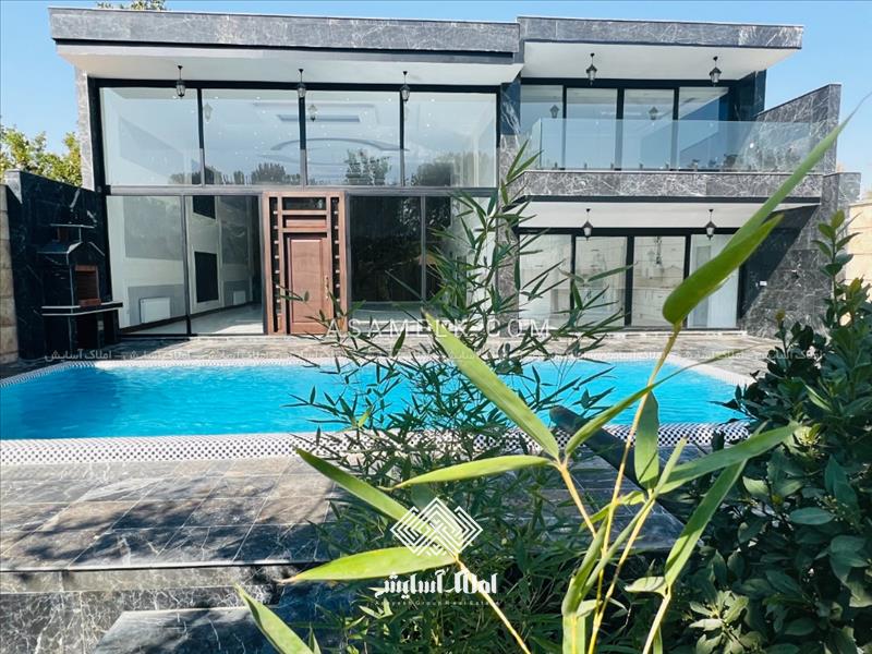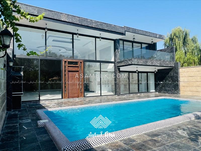 ویلا بسیار زیبا و لوکس ساخته شده به سبک مدرن به مساحت 1200 متر در بهترین موقعیت از منطقه ویلایی لم آباد در شهرستان ملارد با کلیه امکانات از جمله استخر روباز با تاسیسات کامل ، محوطه سازی و نورپردازی بسیار زیبا و حرفه ای و دارای بنا دوبلکس 350 متری با سه خواب مستر به فروش می رسد.