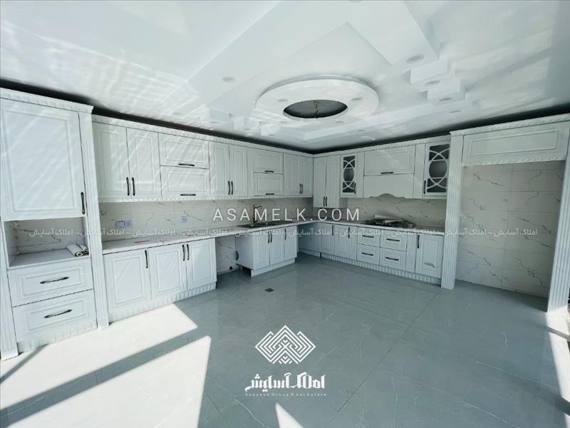 - طبقه همکف شامل: سالن پذیرایی بزرگ با نورپردازی و آشپزخانه با کابینت ممبران و یک اتاق خواب مستر
