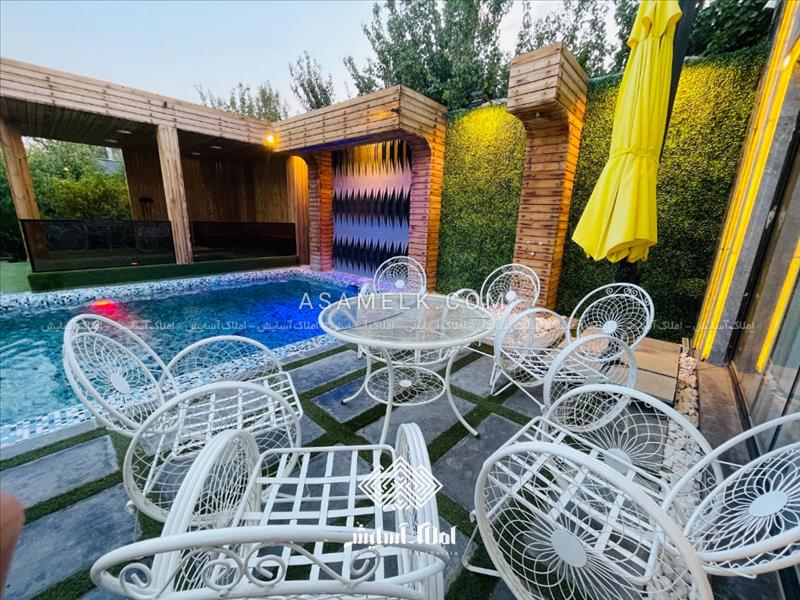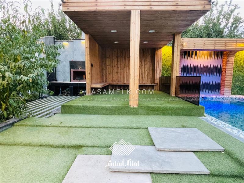 - دارای مبلمان باغی همراه با سایبان در فضای باغ