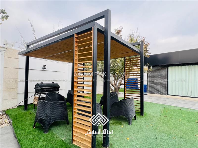 - آلاچیق پرگولا همراه با میز و صندلی و باربیکیو