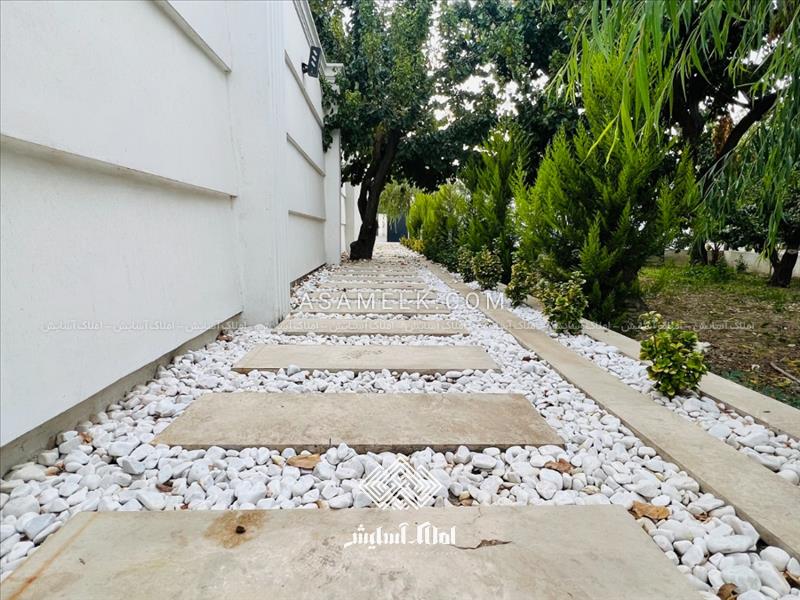 - محوطه چمن کاری و سنگ فرش از ورودی باغ تا درب ویلا