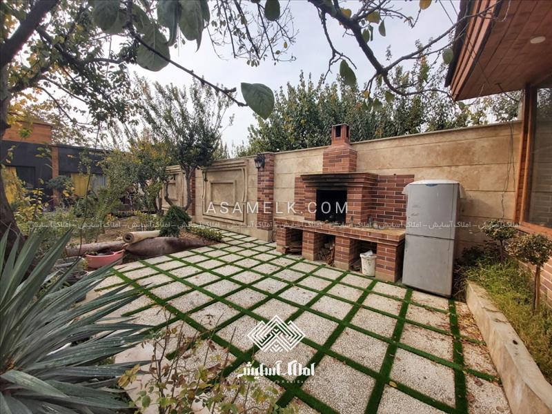 - محوطه باغ شامل درختان مثمر میوه ، آلاچیق سرپوشیده چوبی زیبا و باربیکیو