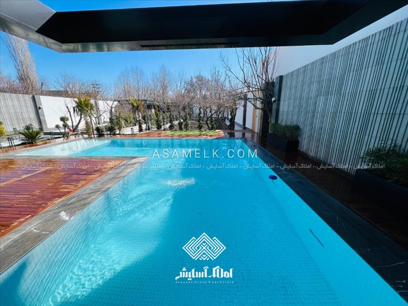 - استخر روباز چهارفصل به همراه آب نما زیبا با تجهیزات و تاسیسات تصفیه