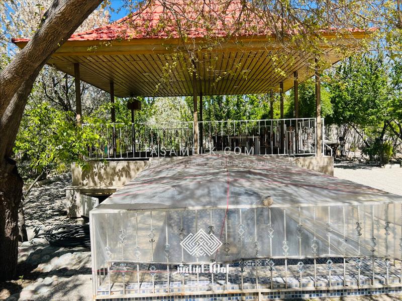 - آلاچیق بزرگ و باربیکیو در فضای باغ