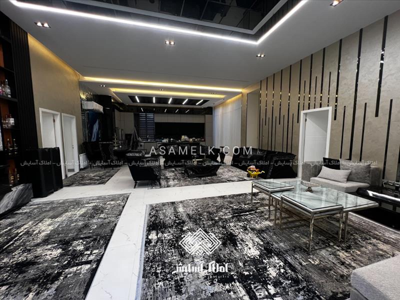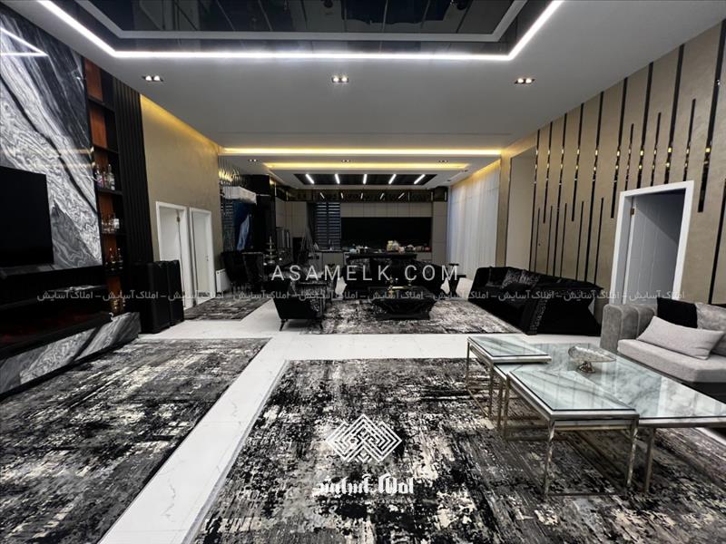 - سالن پذیرایی بزرگ با طراحی زیبا با استفاده از بهترین مبلمان