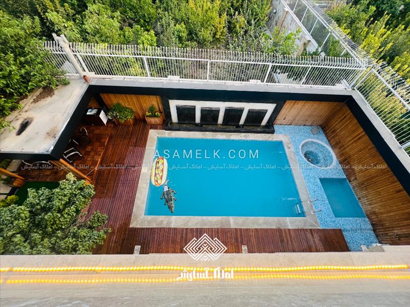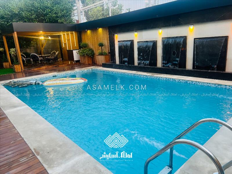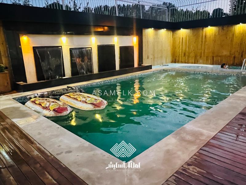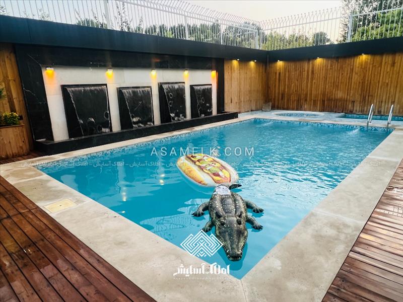 این باغ ویلا در لم آباد دارای استخر چهارفصل روباز همراه با جکوزی و استخر کودک، مجهز به تجهیزات و تاسیسات تصفیه خانه و همچنین آبنما شکیل می باشد. از دیگر ویژگی های این ویلا می توان به 60 متر سوئیت میهمان اشاره کرد که به صورت مجزا با کلیه امکانات از جمله: سالن پذیرایی مبله و میز بیلیارد ، آشپزخانه ،ی ک اتاق خواب می باشد.
