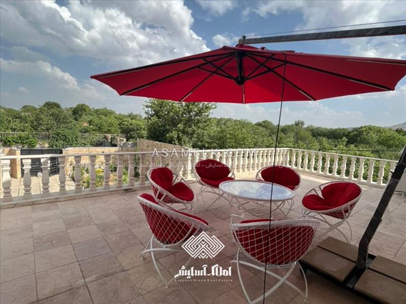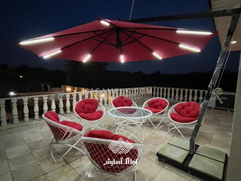- تراس بزرگ با چشم اندازی عالی به همراه سایبان چتری و مبلمان باغی