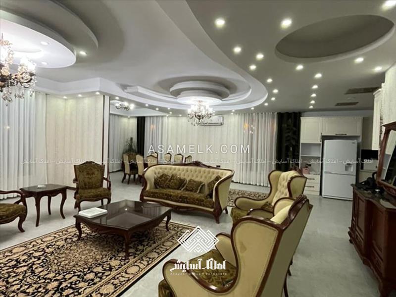 - سالن پذیرایی بزرگ و مبله و آشپزخانه با کابینت های گلاس