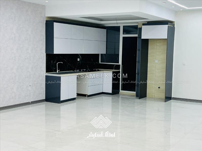 - سالن پذیرایی با نورپردازی عالی و آشپزخانه با کابینت های گلاس