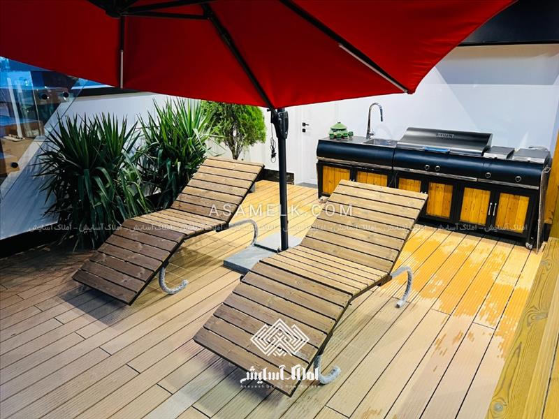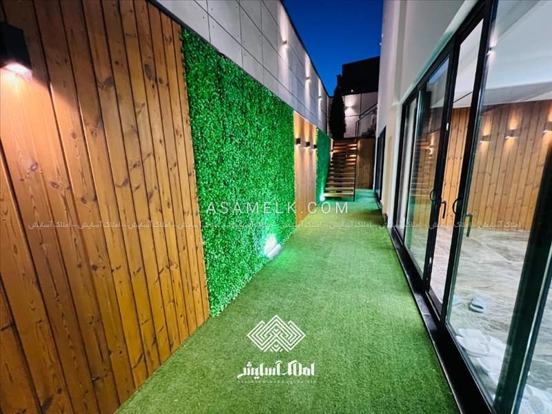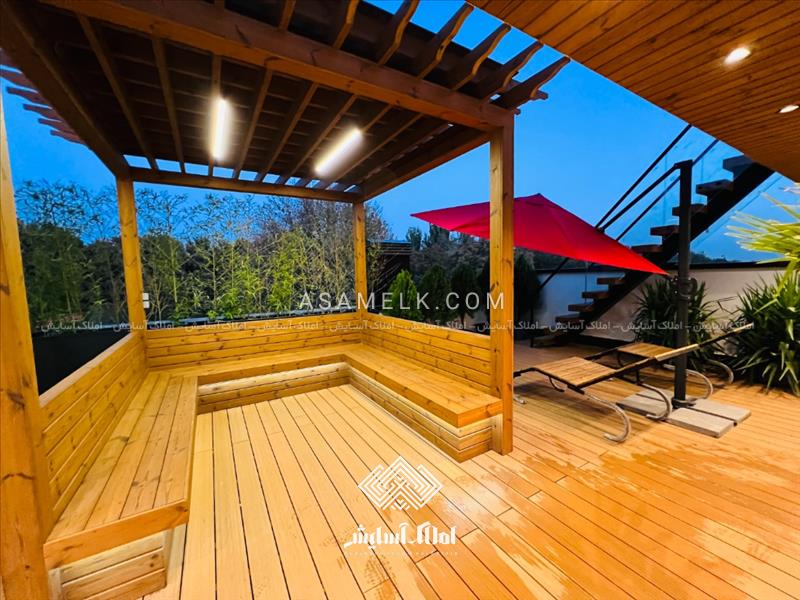 - طبقه بالا شامل: شاه نشین بهمراه آشپزخانه ، تراس ( روف گاردن ) فوق العاده که دارای سایبان ، تخت ریلکسی ، آلاچیق چوبی ، فضای سبز گرین وال ، گل های زینتی ، باربیکیو و چشم اندازی بسیار زیبا و دلنشین از باغات اطراف