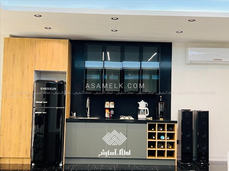 - طبقه همکف شامل: سالن پذیرایی بزرگ همراه با آشپزخانه فول امکانات ( یخچال ساید ، یخچال سوپر مارکتی ، کابینت های کلاسیک ، ماشین ظرفشویی و لباسشویی ، ماکروفر و فر توکار ) tv روم و یک اتاق خواب مستر جهت اقامت میهمان