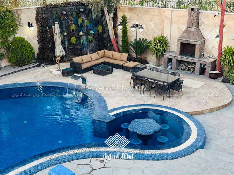 - استخر چهارفصل بزرگ به همراه جکوزی با کاشی های شیشه ای با برند ترک و نورپردازی فوق العاده زیبا