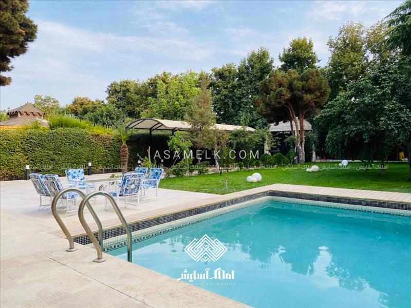 استخر روباز با تجهیزات وتاسیسات تصفیه خانه قابل استفاده در چهارفصل در مجاورت ویلا