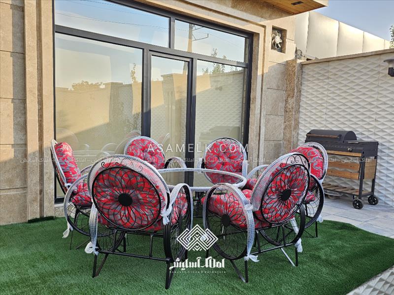 در قسمت ورود به ویلا ، باربیکیو و مبلمان باغی قرار داره