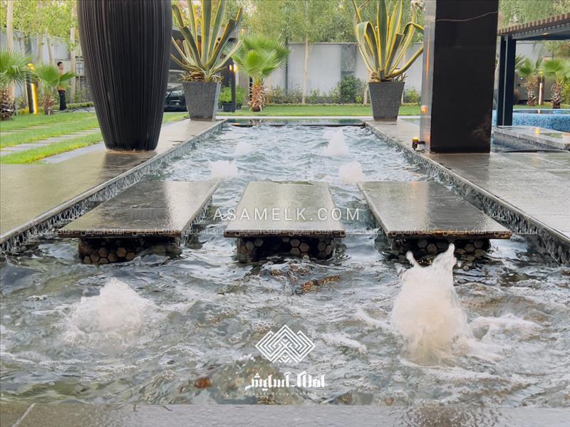 دارای 2 آبنما که یک آبنما بصورت دیواری اجرا شده و آبنمای دیگر بصورت کفجوش در مجاورت استخر هستش